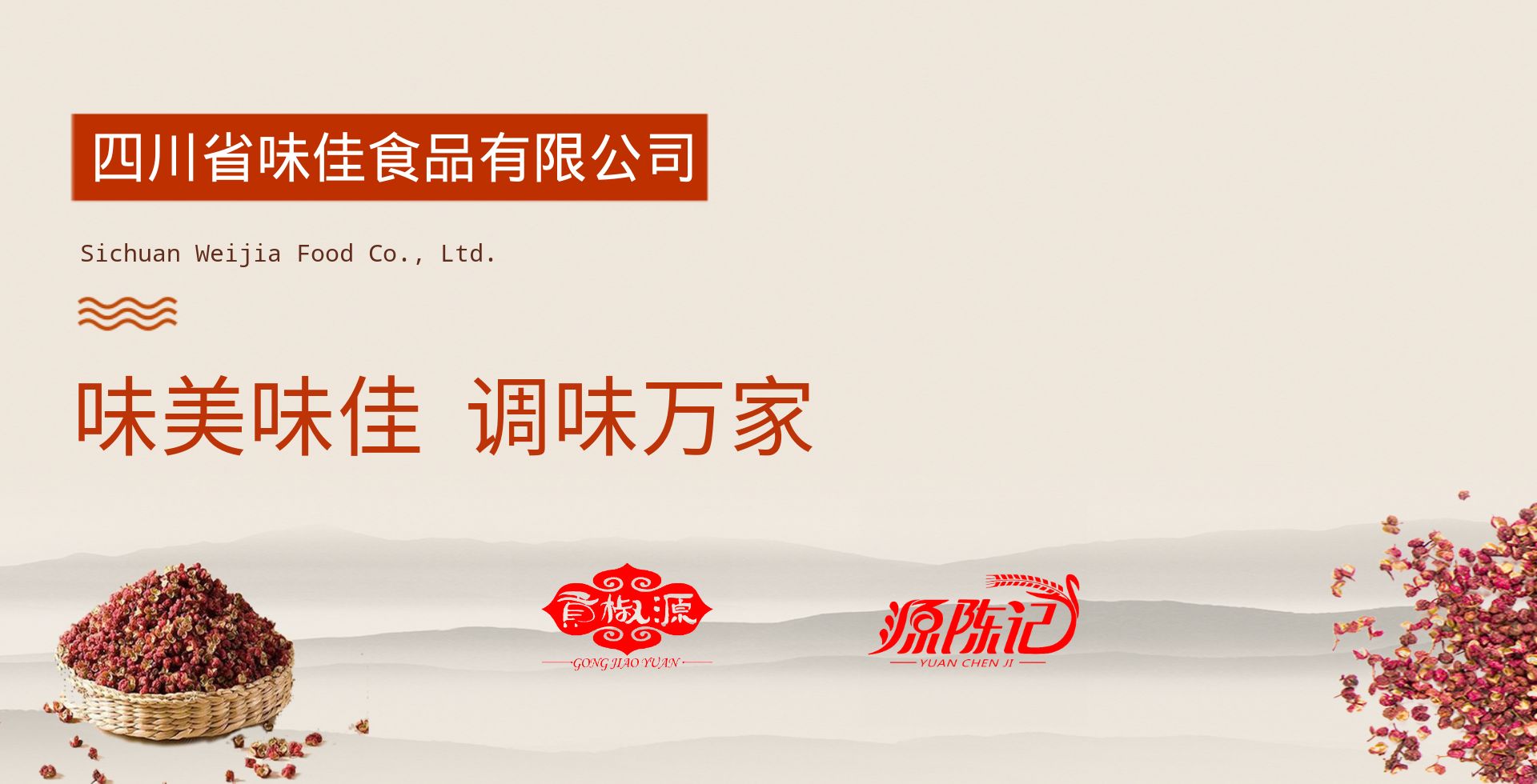四川省味佳食品有限公司位于中國花椒之鄉——漢源。是一家新型的集專業研發和生產花椒系列制品的生產企業。有貢椒源和源陳記兩個品牌產品,有標準化的生產車間、生產流水線。設備、工藝、技術先進,采用數字控制。產品質量穩定。尤其研發的“貢椒源”鮮花椒油調味品,具有高品質、先香后麻、味重、香濃、麻味綿長等特點,深受廣大顧客的贊譽和好評。